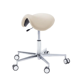 Taborety siodłowe RUCK® STOOL saddle to nowoczesne, ergonomiczne siedziska zaprojektowane z myślą o pracy w gabinetach podologicznych, salonach kosmetycznych i ośrodkach wellness. Kształt siedziska przypominający siodło zapewnia prawidłową pozycję ciała i znacząco odciąża kręgosłup podczas długich zabiegów. Dzięki mobilnej podstawie na kółkach taborety te umożliwiają swobodne przemieszczanie się w obrębie stanowiska pracy, zwiększając wygodę i efektywność codziennych czynności.