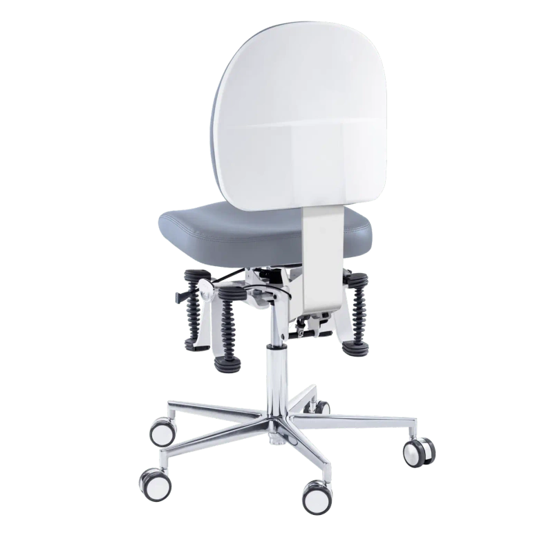• Specjalne wahadła służą jako znakomity amortyzator i równoważnia dla kręgosłupa. Sprawiają, że mięśnie przy kręgosłupie cały czas pobudzane są do jego aktywności w pozycji prostej (zdrowotnej). Ponadto każdy ruch na tym krześle powoduje aktywację mięśni poszczególnych partii ciała, co w efekcie relaksuje i sprawia, że nawet długotrwałe siedzenie jest przyjemnością dla użytkownika.