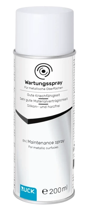 Idealnym do tego jest RUCK® Wartungs- Spray. Specjalną, bardzo wydajną mieszaninę można stosować punktowo przy pomocy cienkiej rurki (jest w zestawie) na miejsca ruchome lub za pomocą suchej ścierki albo chusteczki rozetrzeć po powierzchni przeznaczonej do konserwacji.